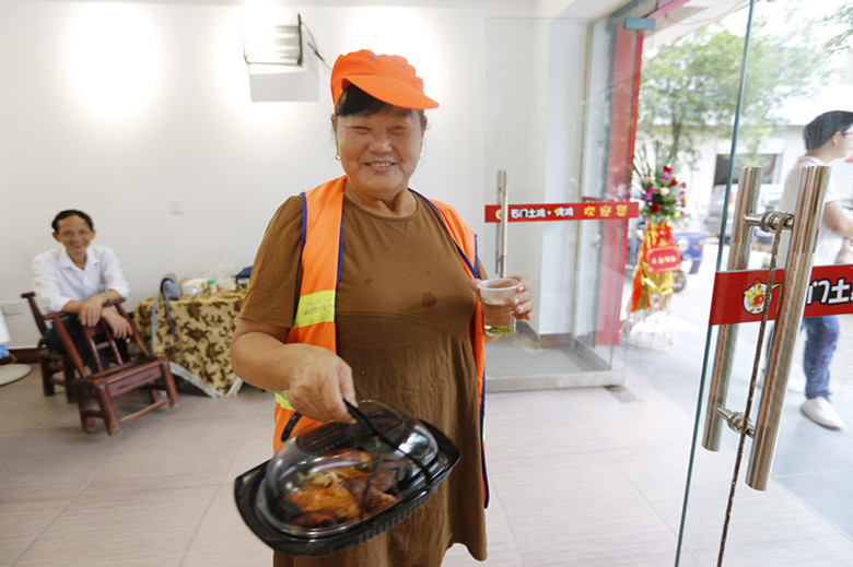 這時,店內進來了一位環(huán)衛(wèi)工阿姨,阿姨說“我家孫子嘴可挑了。他還沒吃過烤雞,給他買一只。如果好吃,我下次再來買。”